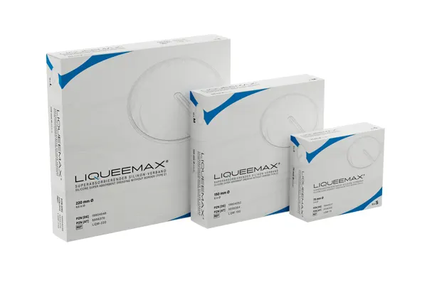 LIQUEEMAX® ist indiziert für die Behandlung von mäßig bis stark exsudierenden Wunden, wie z. B. traumatischen Wunden, postoperativen Wunden, chronischen Wunden, Druckgeschwüren, Tumorwunden oder Verbrennungen. Der superabsorbierende Silikonverband kann während des Applizierens wieder atraumatisch gelöst und bei Bedarf neu positioniert werden, ohne dass die Hafteigenschaften beeinträchtigt werden.